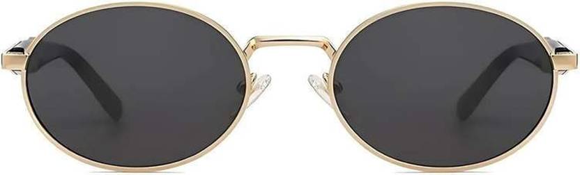 UV Protection, Gradient, Toughened Glass Lens Oval Sunglasses (Free Size) (For Men & Women, Black)