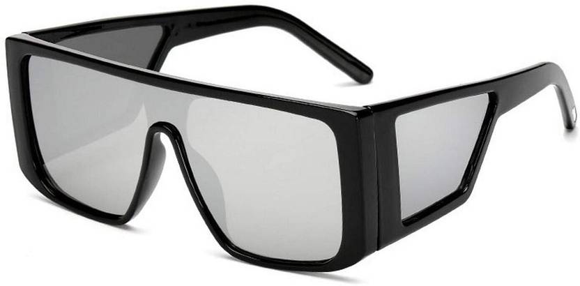 Mirrored, UV Protection, Riding Glasses, Others Wrap-around, Retro Square, Over-sized Sunglasses (70) (For Men & Women, Silver)
