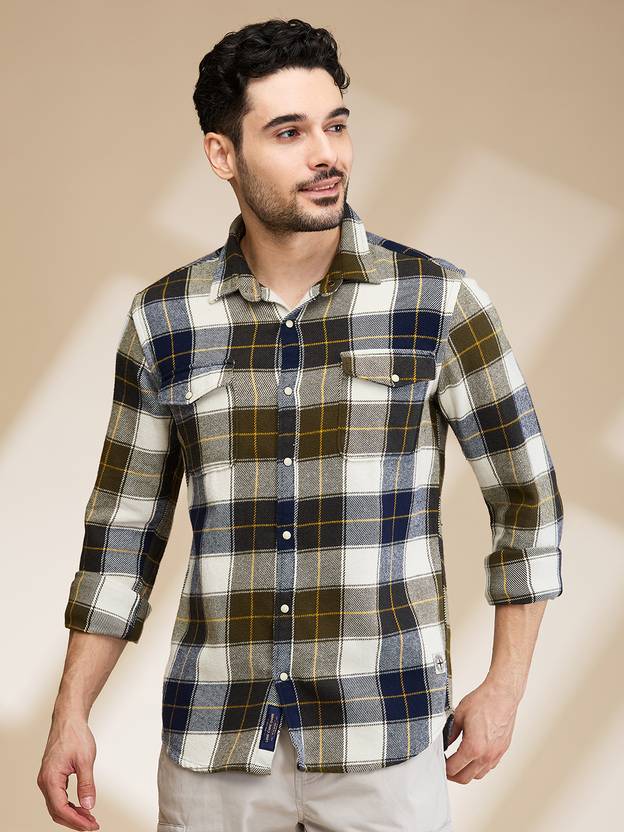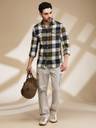 BEING HUMAN Men Checkered Casual Dark Green Shirt