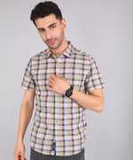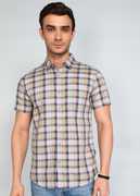 BEING HUMAN Men Checkered Casual Khaki Shirt