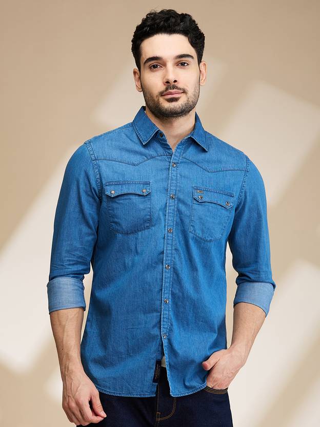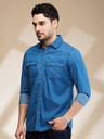 BEING HUMAN Men Solid Casual Blue Shirt