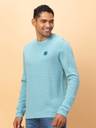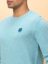 Men Self Design Crew Neck Cotton Blend Green T-Shirt