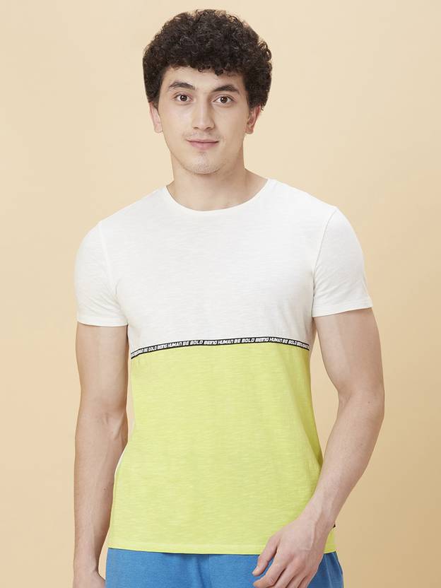 BEING HUMAN GARMENTS MENS-TOP CREW NECK WHITE/SULPHER