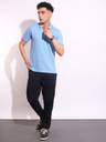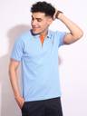 Elevate your casual look with this Being Human blue slim-fit polo T-shirt. Crafted from 100% cotton, this men's polo features a classic polo neckline and half sleeves. The step hem design adds a modern touch, while the solid pattern keeps it versatile. Secured with buttons, this basic-casual T-shirt is perfect for a polished yet relaxed appearance.