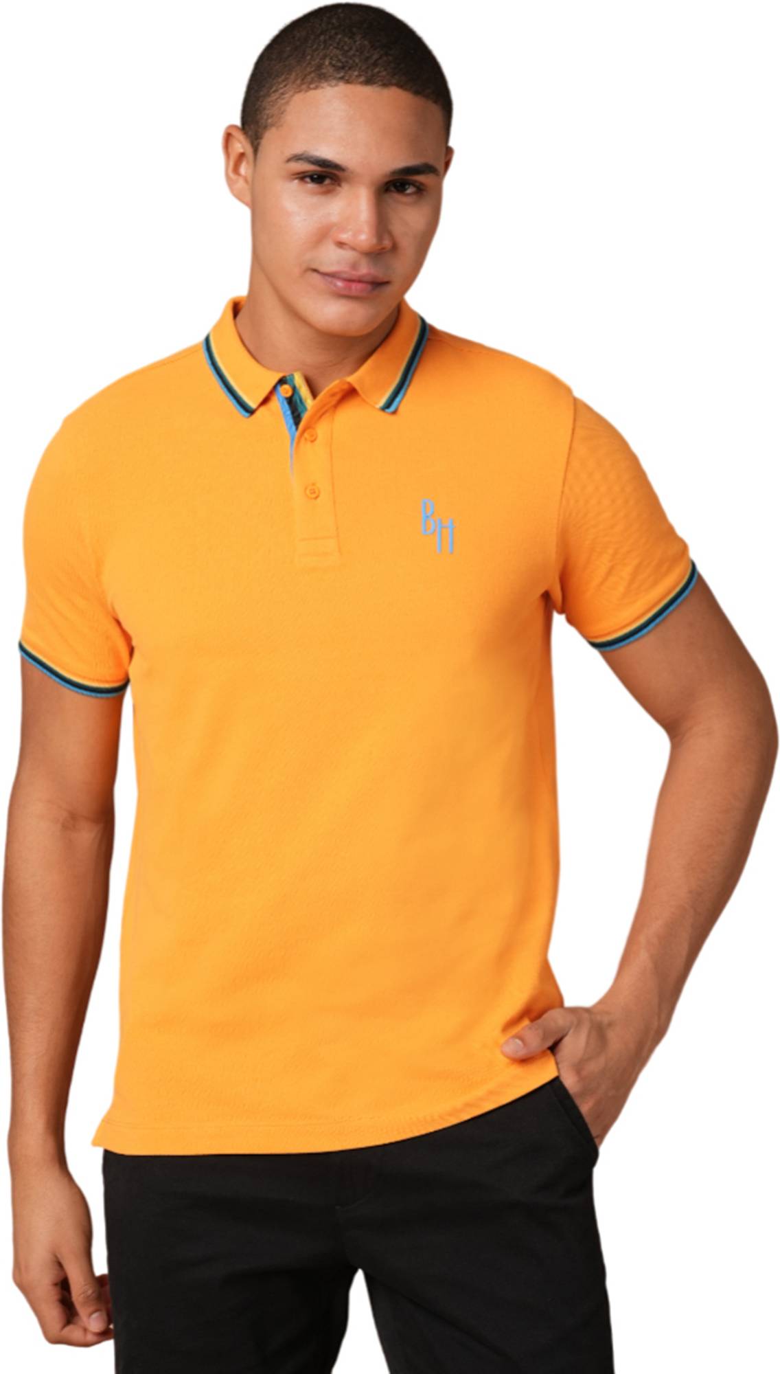 BEING HUMAN Solid Men Polo Neck Orange T-Shirt