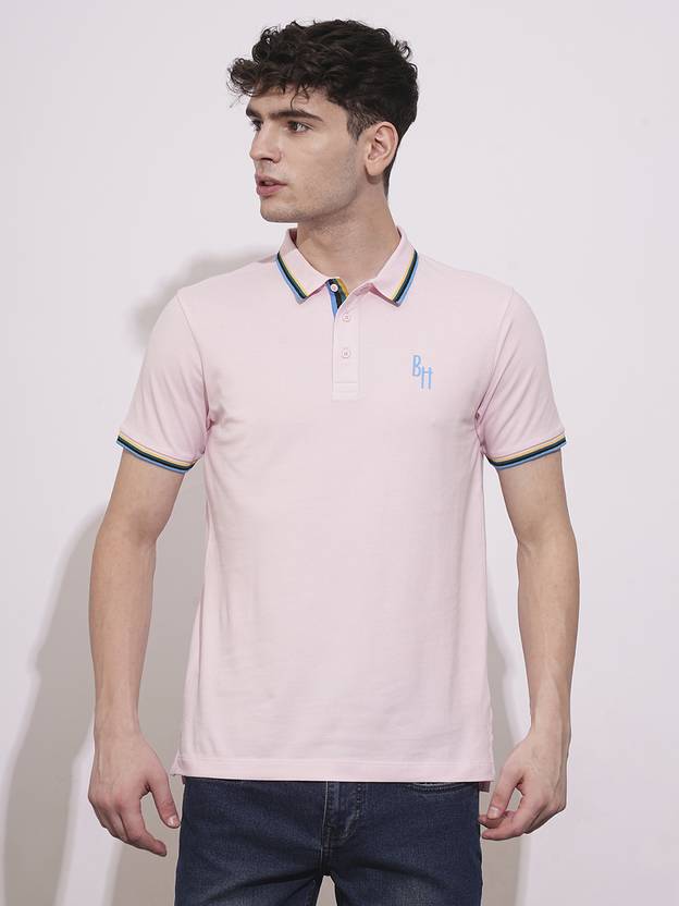 BEING HUMAN Solid Men Polo Neck Pink T-Shirt