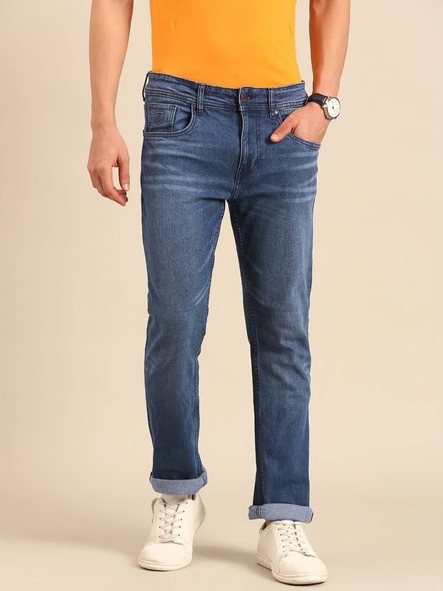 Men Straight Fit Mid Rise Blue Jeans