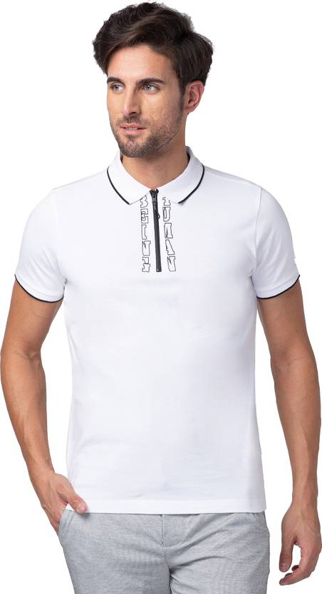 BEING HUMAN Typography Men Polo Neck White T-Shirt