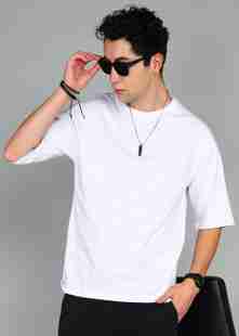 Newsingh Men Solid Round Neck Polyester White T-Shirt
