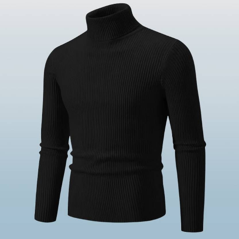Men Solid High Neck Black Sweater