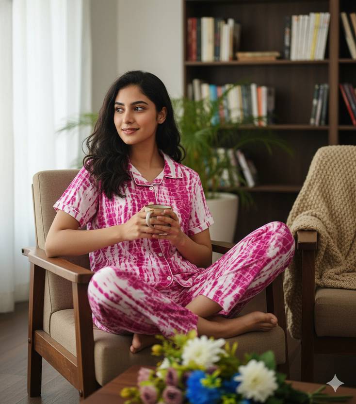 BELADIYA FASHION Women Ombre/Dyed Pink Shirt & Pyjama set