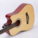 Belear I-280-NAT Natural Matt Cutaway Acoustic Guitar is perfectly designed to allow you to concentrate on excellent playability, and musical tone, with the incredible build quality. The loud volume and rich tone of the I-280 offer incredible sound from its ever-popular cutaway body style. Premium single-cutaway guitar offers exceptional quality at very affordable prices. It comes with a solid spruce top, Linden back, and sides, and Rosewood fingerboard. Plus it's comfortable string height which offers low action string decreases hand fatigue and is comfortable on the finger, perfect for a beginner. The solid spruce top offers an ideal balance and between strength and flexibility, that's why spruce wood gain popularity as the wood of preference for tops of acoustic guitars. Spruce Sharpe's sonic quality make is ideal for kind of musical genres and performing styles. Linden wood back & sides feature softwood with tight grains and will manage to dampen sharp highs and soften them even maintaining level out the thin tinny sound associated with knife-edged tremolo contacts. Its large body offers full tone, and rich linden body material produces rich, warm lows and sweet sustain. It features a truss rod that keeps the neck straight by countering the pull of the strings and natural tendencies in the wood. The Guitar fretboard is manufactured with high-quality rosewood. This tonewood cuts the coarseness in the upper registers to give warm, mellow tones. In addition, the natural color and Brush finish not only improve its looks as well as make it very durable and keep resisting scratching. Additionally, its Semi-Closed Machine head has exquisite and glossy looks with ideal workmanship, good looking, and high technology, the peg is incredibly matched with the guitar and also has a great decoration effect. Our pegs are smooth and easy to adjust to keep the guitar in tune. The I-280 also features comfortably rolled fingerboard edges, this instrument's neck produces an amazingly great sound.