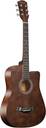 Belear I-280-WBR Couturier 38 Inch Brown Cutaway Acoustic Guitar is perfectly designed to allow you to concentrate on great playability, musical tone, with incredible build quality. The loud volume and rich tone of the I-280 offer incredible sound from its ever-popular cutaway body style. Premium single-cutaway guitar offers exceptional quality at very affordable prices. It comes with a solid spruce top, Linden back, and sides, and Rosewood fingerboard. Plus its comfortable string height which offers low action string decrease hand fatigue and comfortable on the finger, perfect for a beginner. The solid spruce top offers an ideal balance and between strength and flexibility, that' why spruce wood gain popularity as the wood of preference for tops of acoustic guitars. Spruce Sharpe's sonic quality make is ideal for kind of musical genres and performing styles. Linden wood back & sides feature softwood with tight grains and will manage to dampen sharp highs and soften them even maintaining level out the thin tinny sound associated with knife-edged tremolo contacts. Its large body offers full tone, and rich linden body material produces rich, warm lows and sweet sustain. It features a truss rod that keeps the neck straight by countering the pull of the strings and natural tendencies in the wood. The Guitar fretboard is manufactured with high-quality rosewood. This tonewood cuts the coarseness in the upper registers to give warm, mellow tones. In addition, Brown color and Brush finishing are not only improving its looks as well as make it more very durable and keep resists from scratching. Additionally, its Semi-Closed Machine head exquisite and glossy looks with ideal workmanship, good looking, and high technology, the peg is incredibly matched with guitar and also has a great decoration effect. Our pegs are smooth and easy to adjust to keep the guitar in tune. The I-280 also features comfortably rolled fingerboard edges, this instrument neck produces an amazingly comfortable fret-hand feel that's perfect for beginning players or seasoned pros alike
