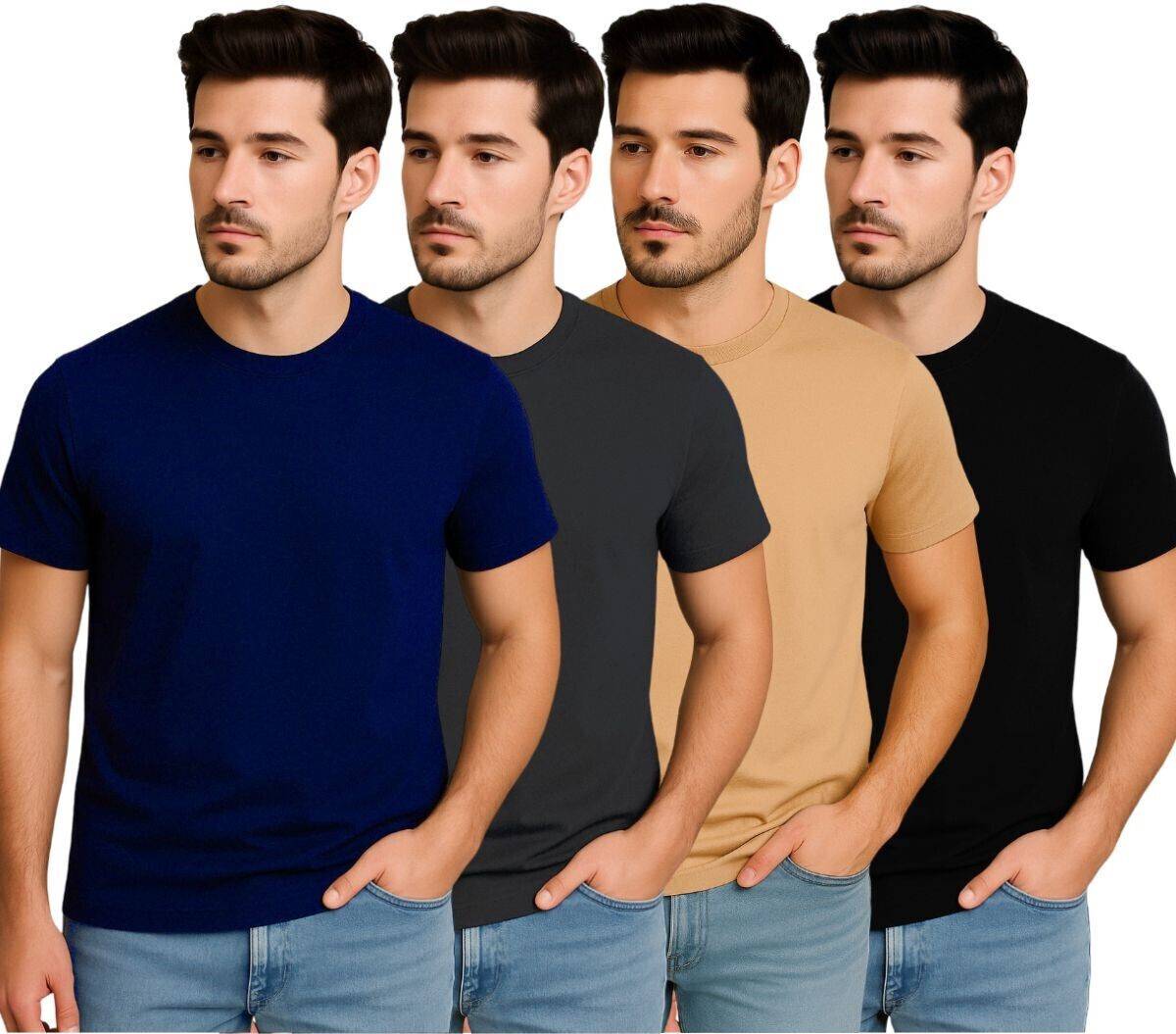Belive in Yourself Pack of 4 Men Solid Round Neck Elastane Multicolor T-Shirt