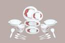 full plate-06, half plate-06, veg bowl-12, serving bowl-02, serving spoon-02, serving bowl lid-02, spoon-06. 36-piece