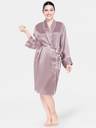 A satin robe is a stylish and elegant loungewear piece made from smooth, silky satin fabric. It drapes beautifully over the body, offering a luxurious feel and a soft touch against the skin. Satin robes typically feature a relaxed fit with a waist tie for adjustable comfort, wide sleeves for added elegance, and sometimes lace or embroidered details for a touch of sophistication. Perfect for wearing over nightwear or as a lightweight cover-up, satin robes add a sense of glamour and relaxation to your daily routine.