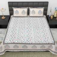 BELLA CASA Cotton King Flat 180 TC Motifs Bedsheet (Pack of 1, Blue)