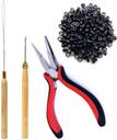 Bella Hararo Hair Extensions Pliers Pulling Hook Bead Device Tool Kits Set With 200PCS Black Silicone Lined Micro Rings