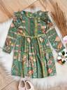 Girls Midi/Knee Length Casual Dress (Green, Full Sleeve)