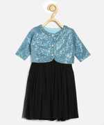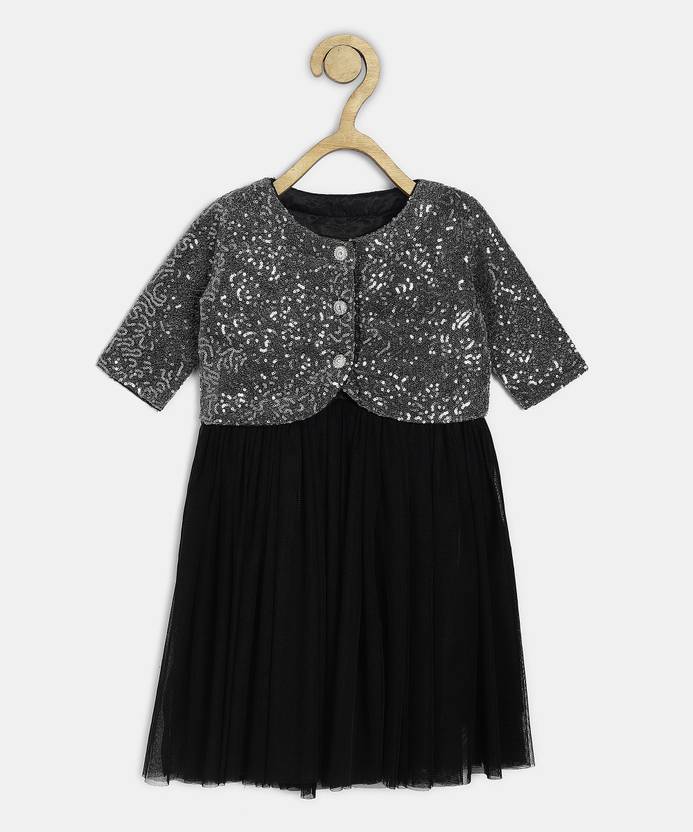 Bella Moda Girls Midi/Knee Length Party Dress (Black, Half Sleeve)