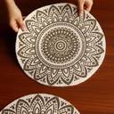 BELLA TRUE Round Pack of 6 Table Placemat (Black, White, Cotton)