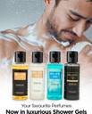 The CEO Man Shower Gel is just perfect for the boss man. With the scent of the best-selling CEO MAN Eau De Parfum in every drop, indulge in the aroma of CEO MAN, right from the time you take a shower., The KLUB Man shower gel is just the thing for the party animal in you. With the scent of the best-selling KLUB Man Eau De Parfum in every drop, have a jam session right in the shower., The SKAI Aquatic Shower Gel is perfect for breezy, free-flowing people. With the scent of the best-selling SKAI Aquatic Eau De Cologne in every drop of the shower gel, experience limitless freshness., The OUD WHITE Shower Gel is a treat for your calm and composed persona. It contains the scent of the best-selling WHITE OUD Eau De Parfum in every drop so that your bathing experience is just like a spa session.