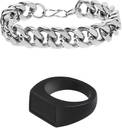 Stainless Steel Alloy Silver Chain Bracelet And Black Ring For Boys And Men (Pack Of 2)