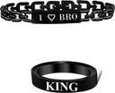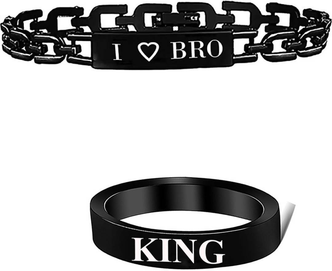 STYLISH RAKSHABANDHAN STYLE I LOVE BRO BLACK BRACELET WITH ALLOY KING FINGER RING FOR BOYS AND MEN (PACK OF 2) COMFORTABLE AND NON-IRRITATING ON SKIN. IT IS SUITABLE FOR ALL OCCASIONS. PERFECT RAKSHABANDHAN GIFT FOR YOUR BROTHER.
