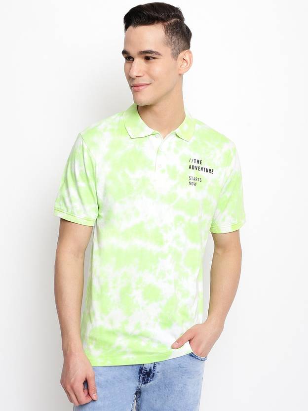 Men Tie & Dye Polo Neck Pure Cotton Green T-Shirt