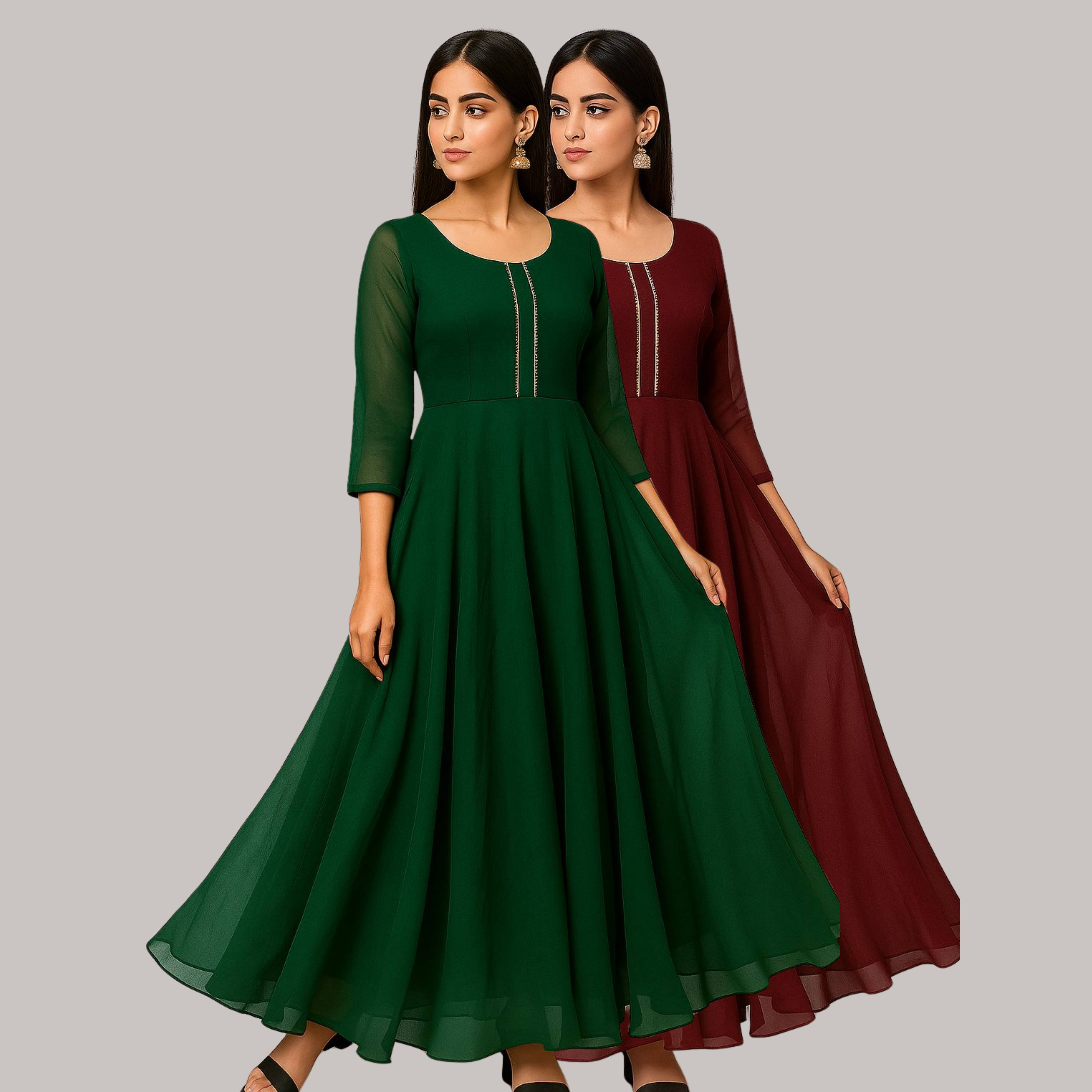 Georgette Stitched Anarkali Gown (Green, Maroon)