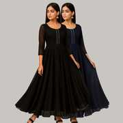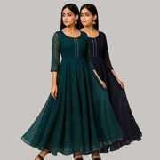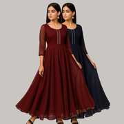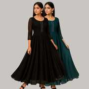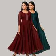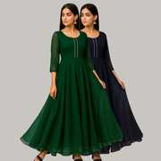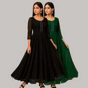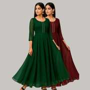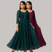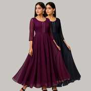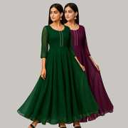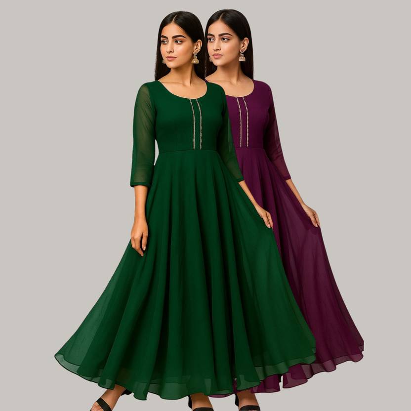 Georgette Stitched Anarkali Gown (Green, Purple)