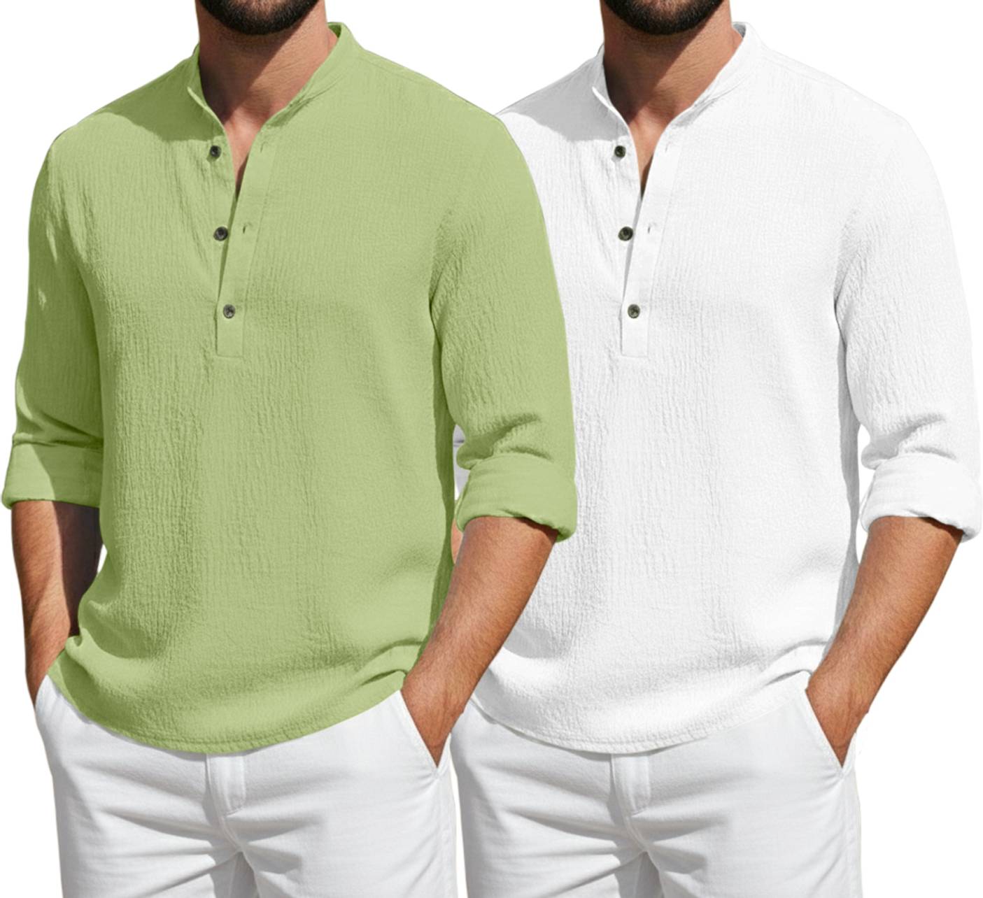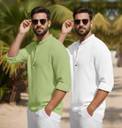 bellstone Pack of 2 Men Solid Cotton Blend Straight Kurta (Light Green, White)