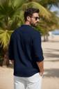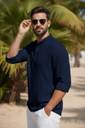 bellstone Men Solid Cotton Blend Straight Kurta (Dark Blue)