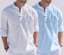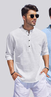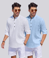 Crafted from a cotton blend fabric, this men's short straight kurta ensures both comfort and durability. The soft texture ensures comfort against the skin, while the breathable material keeps you cool throughout the day. This blend of cotton and synthetic fibres provides long-lasting wear, making it ideal for everyday use. Thanks to its lightweight construction, this kurta is ideal for warm weather, ensuring you stay comfortable while looking sharp.