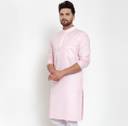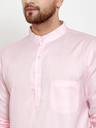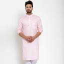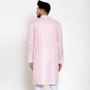 B BEN Men Self Design Cotton Blend High Low Kurta (Pink)