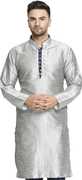KAIFOO, We take pride in our commitment to maintain quality standards in each piece manufactured by us. A true epitome of class, long kurta will surely reflect your impeccable taste in fashion. Made from banarsi dupion silk fabric, this set will surely make you the cynosure of all eyes. Team this jacket with a pair of mojris or kolhapuri chappals to give a classy touch to your ethnic look.