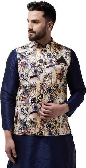 Adorn your look with this fashionable WAISTCOAT set from BEN COOPER that will add a touch of sophistication and class to your ethnic look. Designed to perfection with a round collar for a dash of style and tailored from fine quality fabric. It is comfortable to wear and easy to maintain. It is a great addition to your wardrobe and will win you compliments from one and all.