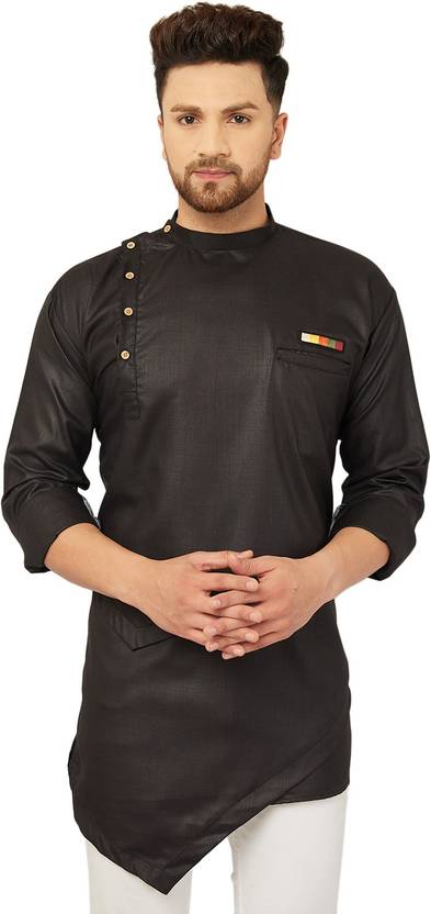 BEN MARTIN Men Solid Asymmetric Kurta (Black)