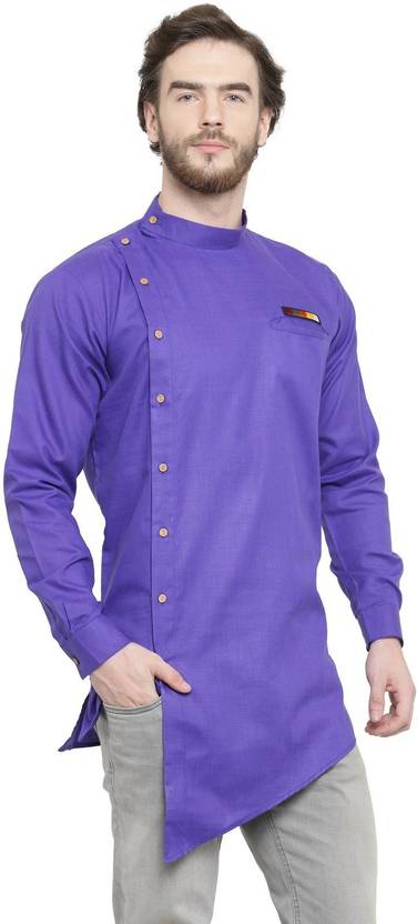 BEN MARTIN Men Solid Cotton Blend Asymmetric Kurta  (Blue)