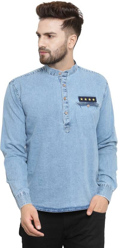 Ben Martin's Men Exquisite Denim Kurta , this Piece from "Ben Martin" is crafted from fine Denim fabric and is the perfect pick for Casual occasion. Team this with a pair of Jeans to complete the Indo Western and classic look.When you want a kurta that you can wear for everyday wear or special occasions again and again, you need to be choosy about the garment that you purchase. Many kurtas for men are mass produced along assembly lines and have crooked seams or raw edges, while others shrink or fade the first time that they are washed. The Denim Kurta for Men is superior to these other kurtas found on , as it's carefully made by skilled artisans out of fade-resistant, no shrink fabric.