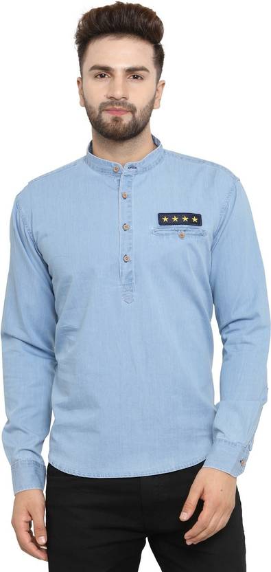 Ben Martin's Men Exquisite Denim Kurta , this Piece from "Ben Martin" is crafted from fine Denim fabric and is the perfect pick for Casual occasion. Team this with a pair of Jeans to complete the Indo Western and classic look.When you want a kurta that you can wear for everyday wear or special occasions again and again, you need to be choosy about the garment that you purchase. Many kurtas for men are mass produced along assembly lines and have crooked seams or raw edges, while others shrink or fade the first time that they are washed. The Denim Kurta for Men is superior to these other kurtas found on , as it's carefully made by skilled artisans out of fade-resistant, no shrink fabric.