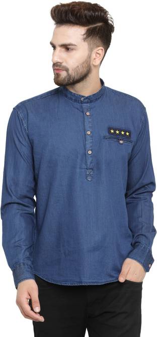 Ben Martin's Men Exquisite Denim Kurta , this Piece from "Ben Martin" is crafted from fine Denim fabric and is the perfect pick for Casual occasion. Team this with a pair of Jeans to complete the Indo Western and classic look.When you want a kurta that you can wear for everyday wear or special occasions again and again, you need to be choosy about the garment that you purchase. Many kurtas for men are mass produced along assembly lines and have crooked seams or raw edges, while others shrink or fade the first time that they are washed. The Denim Kurta for Men is superior to these other kurtas found on , as it's carefully made by skilled artisans out of fade-resistant, no shrink fabric.