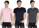 Ben Toi Pack of 3 Men Solid Round Neck Polyester Multicolor T-Shirt