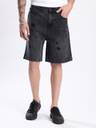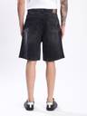 Men’s black baggy fit distressed denim shorts with a relaxed fit and rugged rip details. Perfect for casual wear or adding an edgy touch to your street-style wardrobe.
