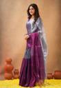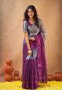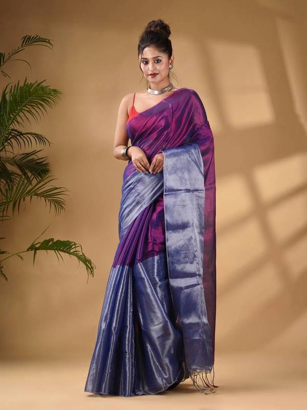 Bengal S Self Design Handloom Tissue Saree (Purple, Silver)