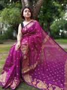Bengal S Woven Jamdani Cotton Silk Saree (Pink)