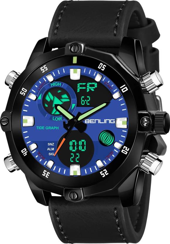 Adorn your Wrist with BENLING Multifunctional Watch made for Boys and Men. The Watch has several Features that include EL Backlight Display that makes visibility easier in the dark, Analog and Digital Time Display, Chronograph Feature, Hourly Chimes, Stopwatch, Countdown, Dual Time Display both Home and Away, Water Resistance up to 3 ATM, Day, Month and Date Display and much more. The Watch is suitable for Boys and Men and can be carried on every occasion.