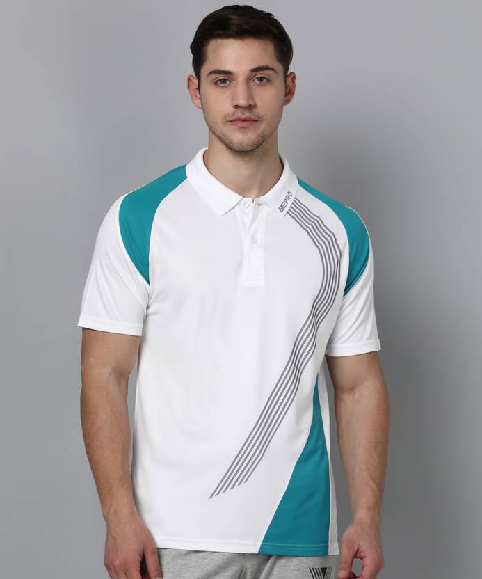 BEPRO Abstract Men Polo Neck White T-Shirt