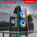 our gaming case is the good quality produts come with two rgb fan 120mm 1200 rpm in front with front tamperd galss and side panel also the tamprd galss and also come with the 2.0 usb and one 3.0 usb .