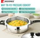 BERGNER Argent Elements Triply Stainless Steel Outer Lid Pressure Pan | 3.5 L Outer Lid Induction Bottom Pressure Cooker (Stainless Steel)